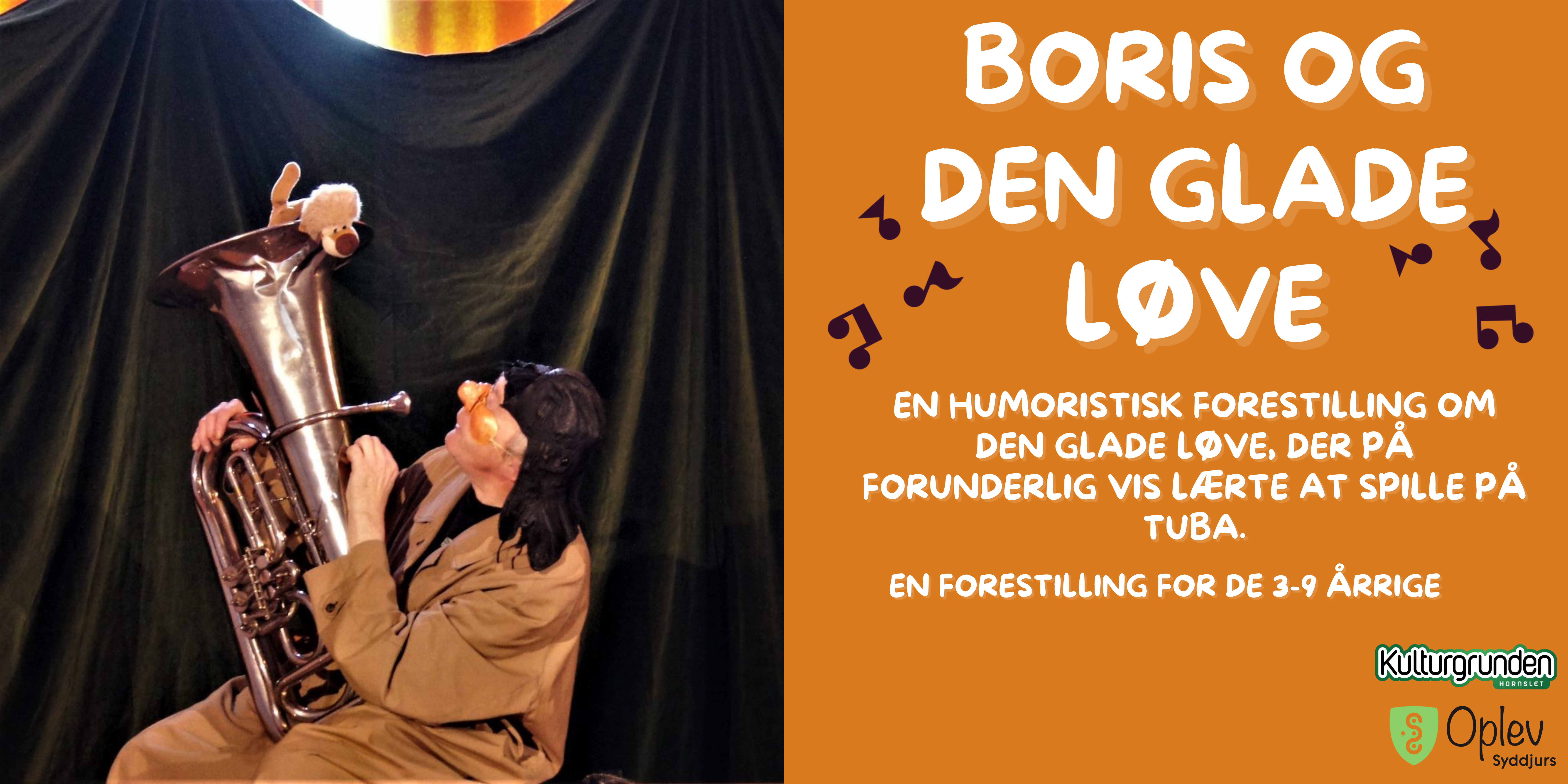 Den 4 juli kl. 11 inviterer Kulturgrunden Hornslet byens 3-9 årige til den humoristiske forestilling Boris og den glade løve. Den finurlige musikant Boris elsker at spille musik, men allermest elsker han at fortælle historier. Den historie Boris elsker allermest er historien om den glade løve, der på forunderlig vis lærte at spille på tuba! [...]